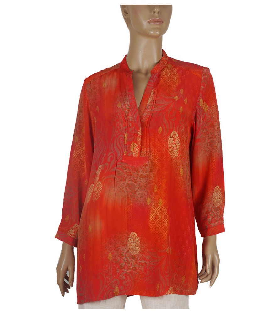Tags: Long Silk Shirt - Red Base Golden Patch