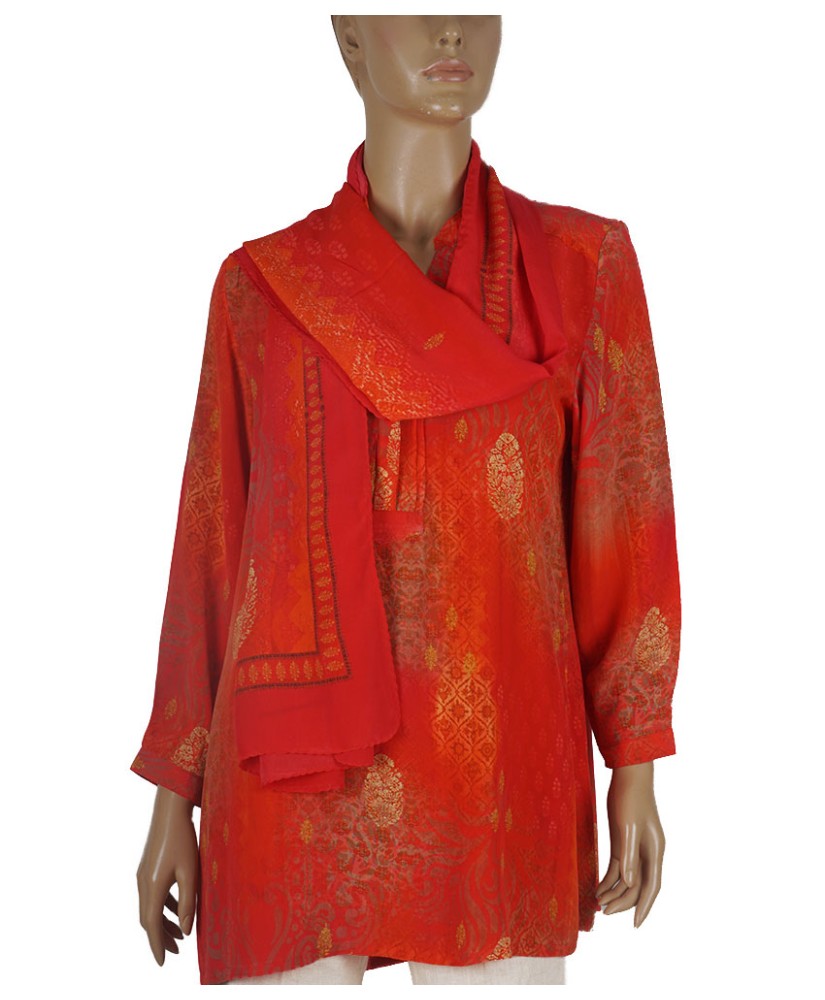 Long Silk Shirt - Red Base Golden Patch