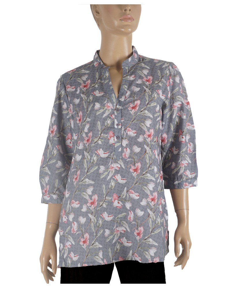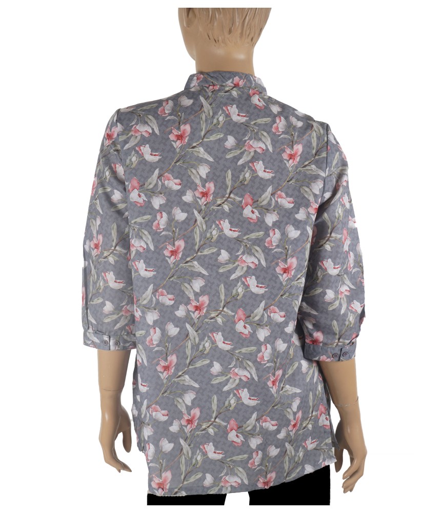 Casual Shirt - Pink Flowers On Grey Base