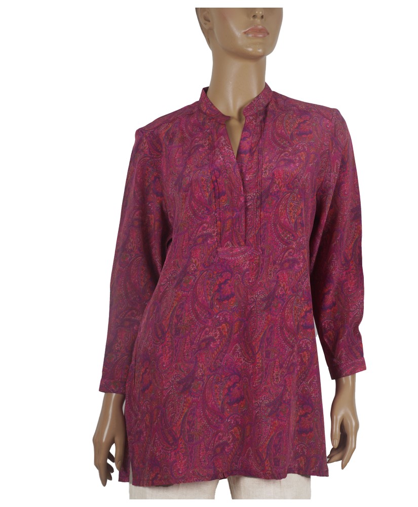 Long Silk Shirt - Pink Paisley